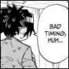 Description: Mangacap of Agari [from komi-san wa komyushou] from behind, sweating and saying "Bad timing, huh..."
